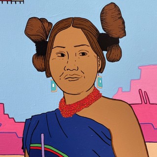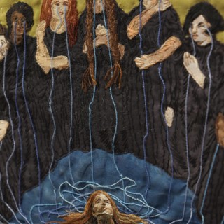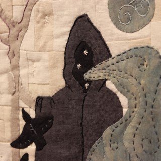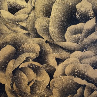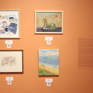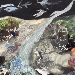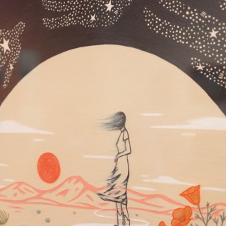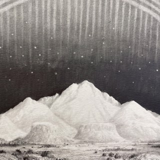 Interdisciplinary artist Kat Kinnick chose a piece of music by Albuquerque-based musician Heather Trost, from her album featuring gavottes by composers from J.S. Bach to Jean-Phillipe Rameau, and one original composition by Trost, all recorded on electronic keyboard instruments. “For some reason my mind just goes to the Cloisters when I hear this album, even though the Medieval ages is an earlier time period,” Kinnick says. Her painting evokes a similar mood, showing a stone horse with bat wings standing over a dragon against a velvety background. “I often find that music draws out imagery of textures, crafts, time periods and things that I love,” Kinnick says. “It helps me visualize my subconscious.
